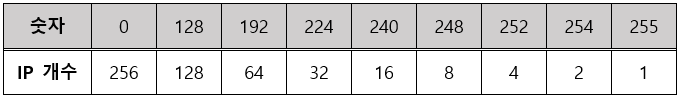 - 처음과 끝 주소는 사용할 수 없으므로 실제 쓸 수 있는 주소는 2개를 빼야 된다.
