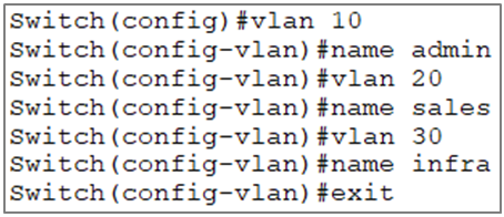 - (config-vlan) #name admin: 해당 VLAN 이름 설정