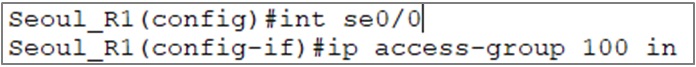 - ip access-group 100 in: 신호가 들어올 때, access-list의 100번(Group) Filtering 적용