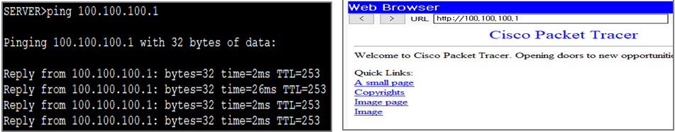 - ip nat inside source static tcp 10.0.0.1 80 100.100.100.1 80: 10.0.0.1:80를 100.100.100.1:80 Match 시킨다.