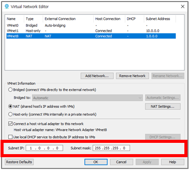 - VMnet 8 Network Access: 외부 PC와 통신할 때, VM이 인터넷 접속할 때(실제 네트워크를 벗어날 때) 사용된다.