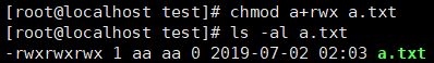 - setfacl -m u:aa:rw a.txt: a.txt에 user 권한에 aa 사용자 rw 권한을 추가한다.