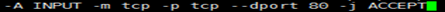 - “-A INPUT –m tcp –p tcp –dport 80 –j ACCEPT”: http port를 열어준다.