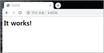 - 웹에서 해당 Server의 IP주소를 입력하면 위와 같은 화면이 나온다(Chrome에서는 나오지 않았다.)