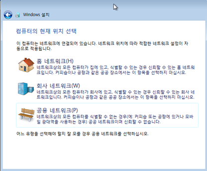 - Windows 7에서는 홈/회사/공용 네트워크 위치 유형이 존재, Windows 8부터 개인(홈) 네트워크와 공용(게스트) 네트워크의 두 가지 유형의 네트워크 위치로 구분된다.