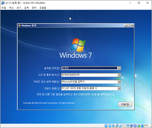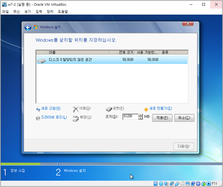 - w7로 이름을 지정하면 버전이 자동으로 Windows 7이 설정된다.