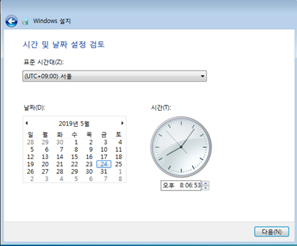 12. 디스크 파일 삽입 후, 시작 버튼 클릭하면 다음과 같이 OS 설치화면 실행