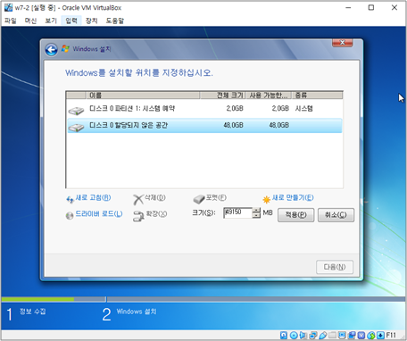 18. 나머지 공간 파티션2에 새로 만들기 -> 적용