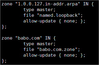 - /etc/named.rfc1912.zeones : 존을 추가하거나 삭제할 수 있는 파일