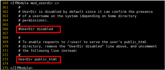 - 각 사용자 계정에 따른 홈페이지 서비스를 할 수 있게 된다. 해당 계정 Home Directory에 public_html Directory를 추가하면 해당 Directory로 접속하게 된다.