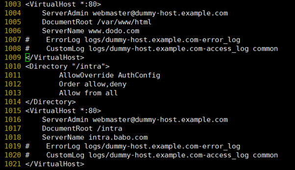 - www에 대한 정보는 위쪽에서 설정했기 때문에 <Directory>를 만들지 않아도 된다.