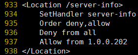 - server-info 정보에 대한 접근 제한을 설정할 수 있다. Server의 설정 정보를 모니터링할 수 있으므로 관리자만 확인할 수 있게 설정해야 한다.