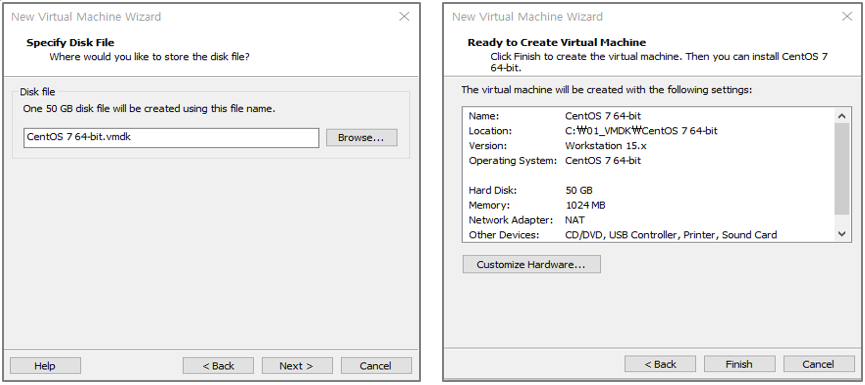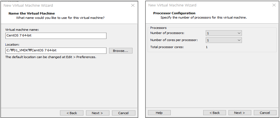 - Virtual machine의 이름과 파일이 저장될 위치 설정