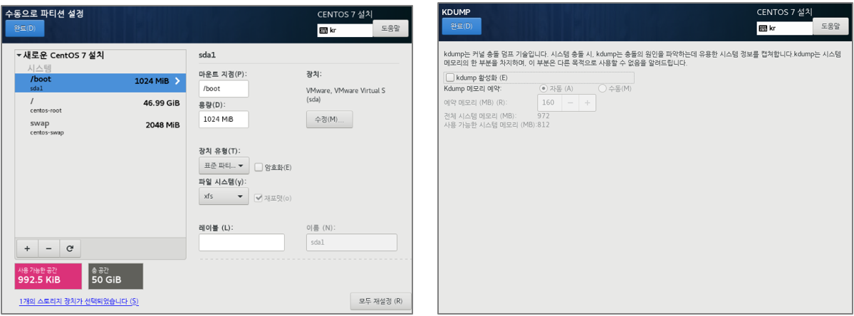 - KDUMP를 비활성화시킨다. kdump - 갑자기 꺼졌을 때, 메모리에 내용을 저장해둔다.