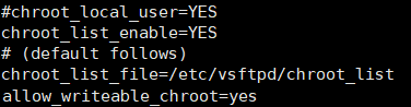 - chroot(사용자 격리)를 사용하기 위해서는 allow_writeable_chroot=yes 추가해야 한다.