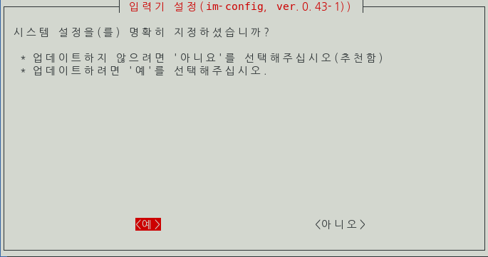 - #apt-get install -y fonts-nanum nabi im-switch: fonts-nanum, nabi, im-switch를 설치한다.