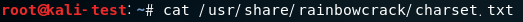 - /usr/share/rainbowcrack/charset.txt에서 ascii-32-95와 같은 Character Set를 확인할 수 있다.