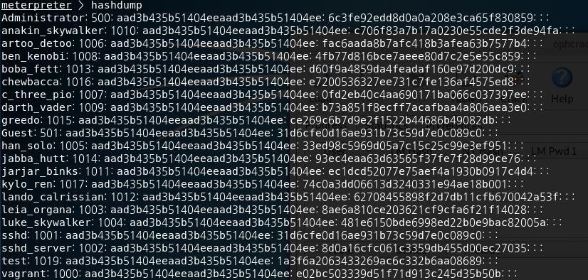 - EthernalBlue 취약점으로 공격을 한 뒤, hashdump 입력