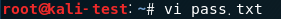 - crunch 명령어를 통해서 만들어도 되지만, 지금은 테스트이기 때문에 직접 Password 텍스트 파일을 만든다. pass.txt 생성