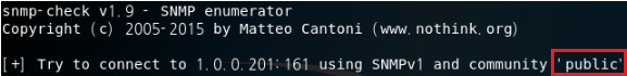 - #snmp-check 1.0.0.201 -c pub : community를 pub로 설정해서 체크
