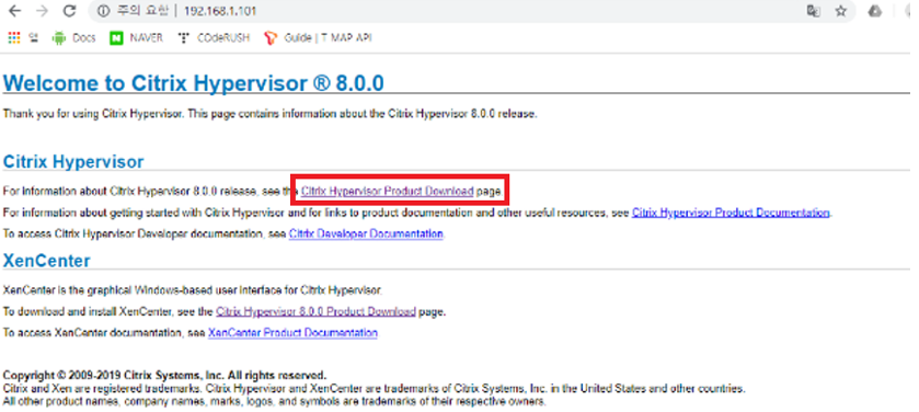 - Xen Server 설치 후, Xen Server IP로 접속하면, Center를 설치할 수 있는 Download Page 링크가 나온다.