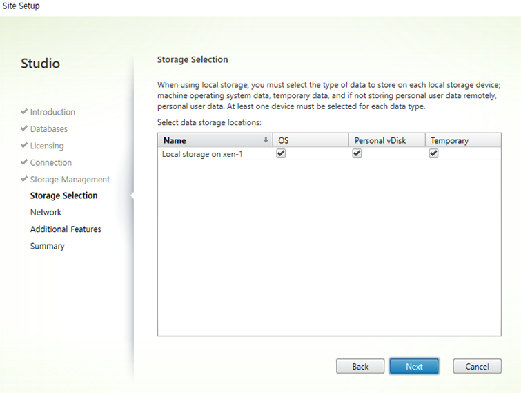 - Storage에 저장할 Data 선택, OS, Personal vDisk, Temporary 모두 선택