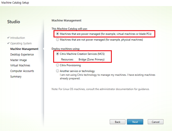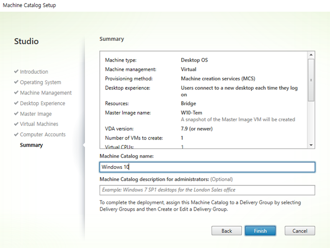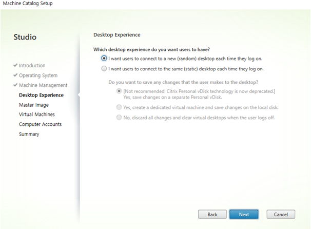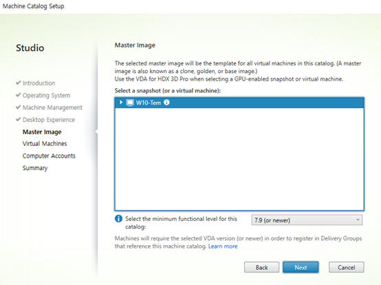 - Master Image 선택 (MCS 또는 Citrix Provisioning을 사용하는 경우, Master Image에서 sysprep을 실행하면 안 된다)