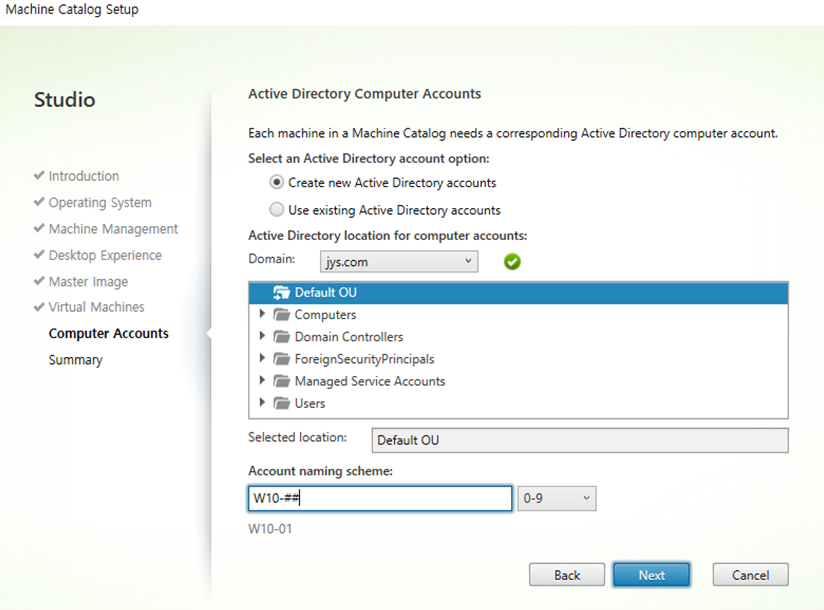 - Active Directory Computer Accounts, 새로운 계정 생성 체크