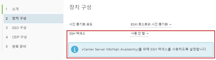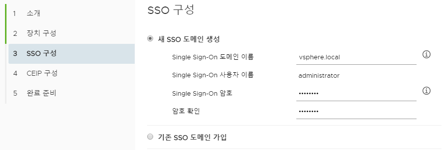 - 통합으로 ESXi의 인증을 관리하기 위한 SSO를 구성한다.