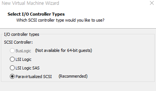 - I/O Controller 설정, Paravirtualized SCSI 체크(반가상화)