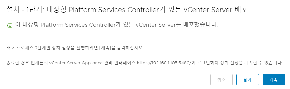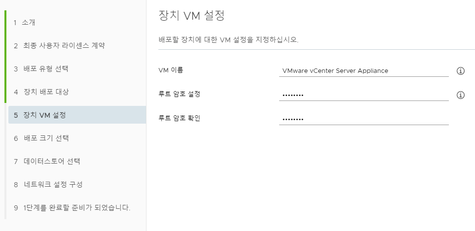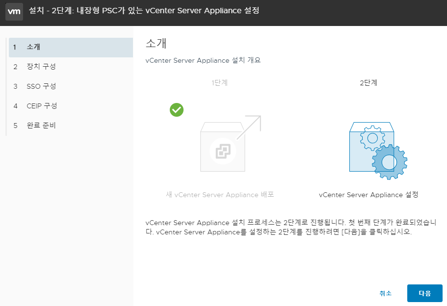 - 2단계: vCenter Server Appliance 설정