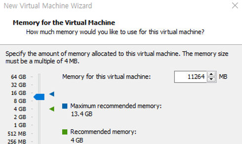 - Memory 설정, 11GB Memory(최소 10GB 이상)