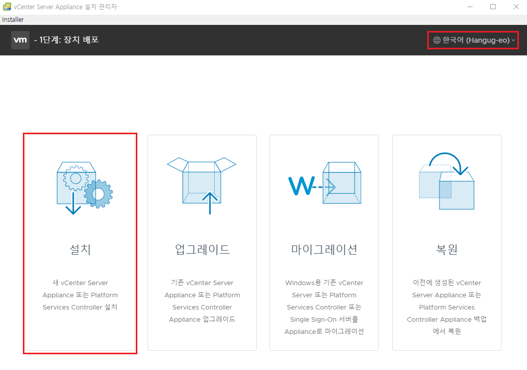 - vcsa-ui-installer -> win32 -> installer.exe 클릭