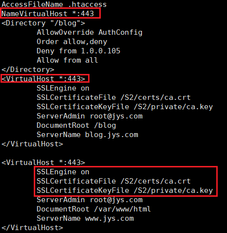 - NameVirtualHost *:443, 443번 포트로 2개의 웹사이트를 사용하기 위해 VirtualHost 추가