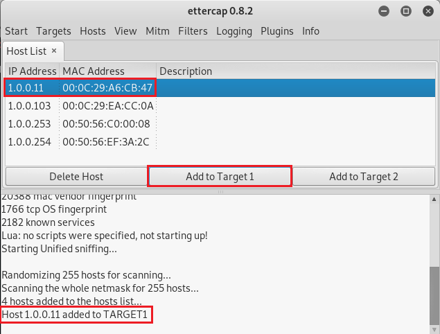 - 공격할 IP 선택 -> Add to Target 1 클릭