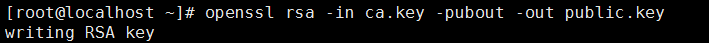 - # openssl rsa -in ca.key -pubout -out public.key: 개인 키(ca.key)로 공개 키 생성