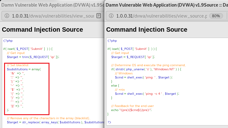 - "|", "&", ";" 등 시스템상에서 멀티라인을 지원하는 특수 문자에 대한 검증을 실시하는 코드를 사용함으로써, 해당 함수에 유해한 값이 전달되지 않게 해야 한다 [1]