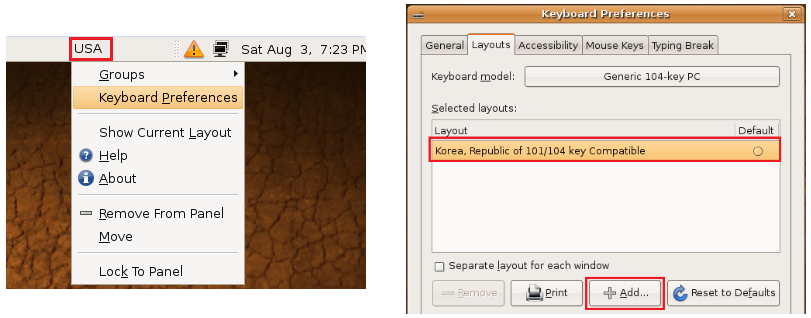 - USA 오른쪽 마우스 -> Keyboard Preferences