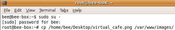 - # cp /home/bee/Desktop/virtual_cafe.png /var/www/images/ : 웹페이지 폴더에 이미지 복사